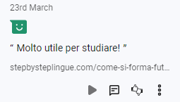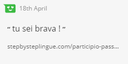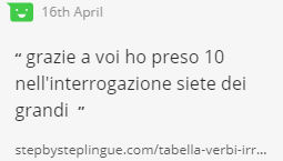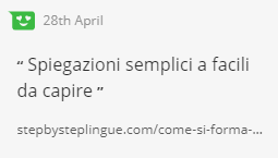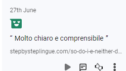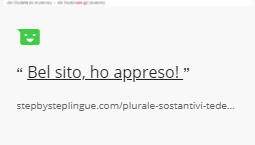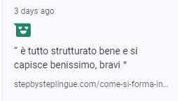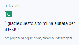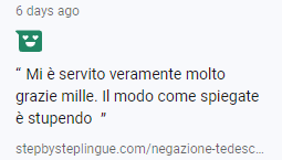 Se trovi utili gli Step di inglese e tedesco lasciami un feedback cliccando sulla faccina rossa in basso a sinistra che trovi qui nel sito, oppure scrivimi su Facebook o mandami una mail!